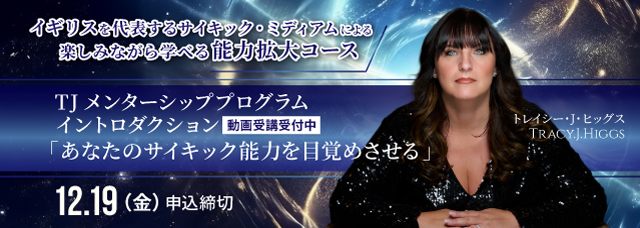 ◆【12/19(金)締切】動画一括受講:オンライン養成講座:TJメンターシッププログラム-イントロダクション「あなたのサイキック能力を目覚めさせる」 ◆【4/3(金)締切】LIVE開催:2026年 TJメンターシッププログラム- ...