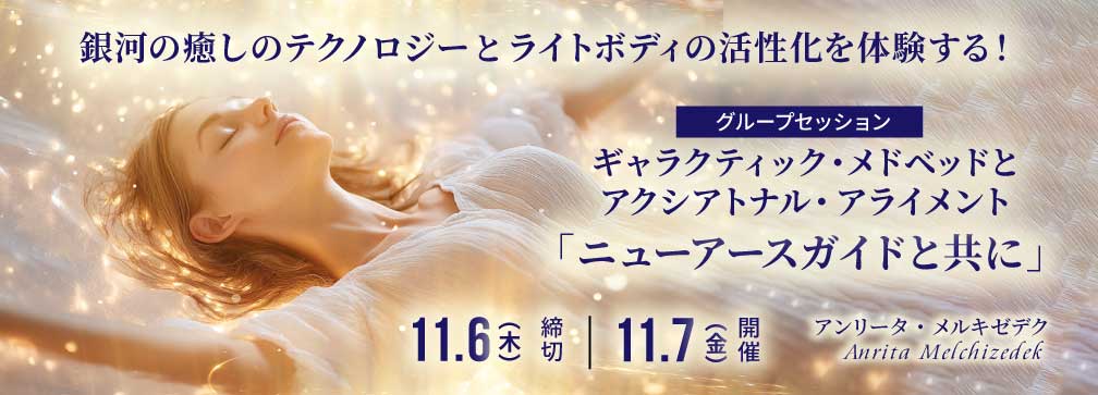 ◆【11/6(木)締切】グループセッション:ギャラクティック・メドベッドとアクシアトナル・アライメント「ニューアースガイドと共に」11/7(金)開催 ◆【12/5(金)締切】マンスリー無料遠隔ヒーリング「ギャラクティッ ...