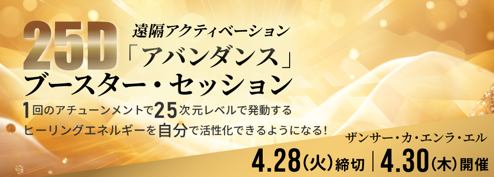 ◆【4/28(火)締切】遠隔アクティベーション「25Dアバンダンス・ブースター・セッション」4/30(木)開催 ◆【5/27(水)締切】遠隔アクティベーション「25Dラブ・ブースター・セッション」5/28(木)開催 ◆【開催中】 ...