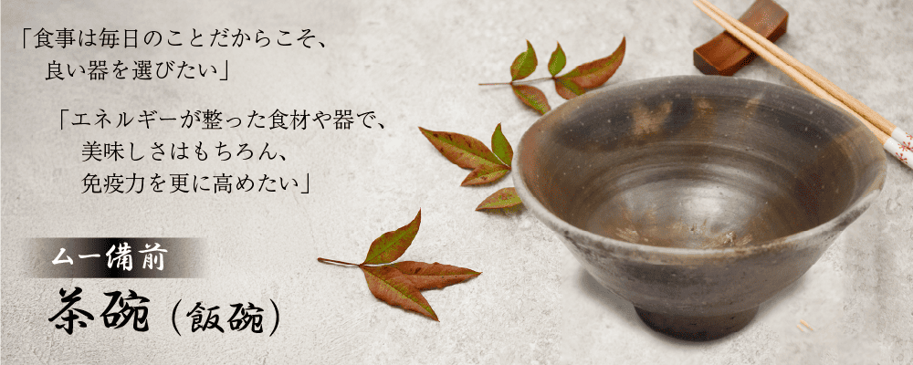 ムー備前茶碗は、食材や水に触れることで波動値が上昇。免疫波動への作用も確認され、日々の食事をエネルギーから整えます。