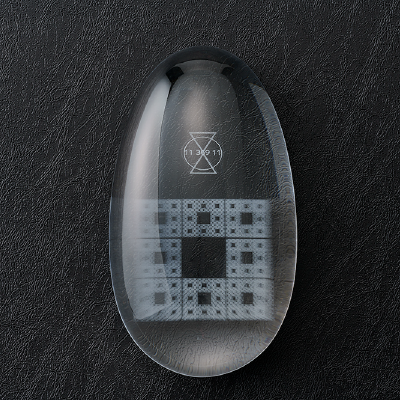 フォトニックフラクタル・ヒーリングマウスは、シェルピンスキーのカーペットという数理学的につくられた図形をもとに、PCのマウスに似た特殊な形状のクリスタルガラスの中にレーザー刻印されているものです。