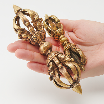 [ゲレル・ドルジェ(光明金剛杵)またはカランクイ・ドルジェ(黒暗金剛杵)] +アズ・ドルジェ(増益金剛杵)【商品番号】92622-0 ¥60,000(税込) 【ゲレル・ドルジェ】全長157mm、重さ374g |
