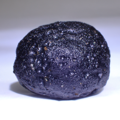 その黒く光沢のある原石の表面には、「ティンブル」と呼ばれる多数の小さなくぼみや穴があり、これは超高温で飛翔した痕跡だと考えられています。