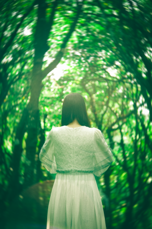 白いワンピースに長い髪、木漏れ日を受けて佇む彼女は、まるで精霊のようでした。