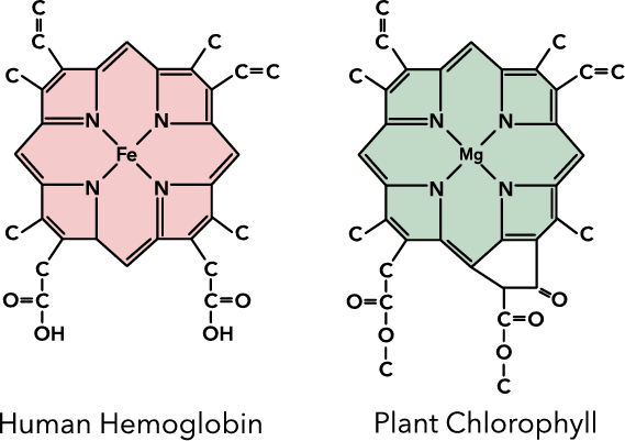 クロロフィルの分子構造は、人間の血液中のヘモグロビンと驚くほど類似しています。