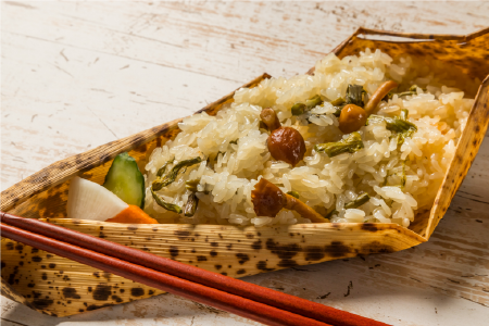 炊き上がるとほんのり緑を帯び、もちもちとした弾力とやさしい甘みが広がります。