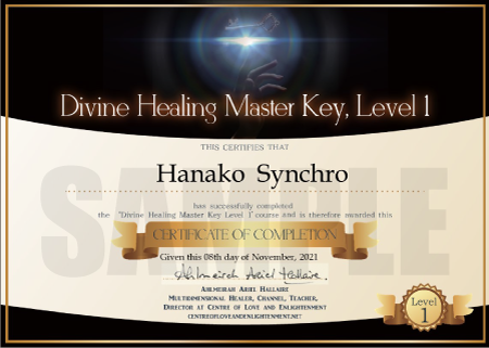 受講後は修了証が渡され、レベル1修了だけでも、ディヴァインヒーリングの名称のもとに、クライアントに有料でセッションを行うことができます。